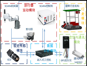 •适合茶园复杂地面和非结构化茶棚环境下的采茶机器人移动平台、机械手结构设计等关键技术